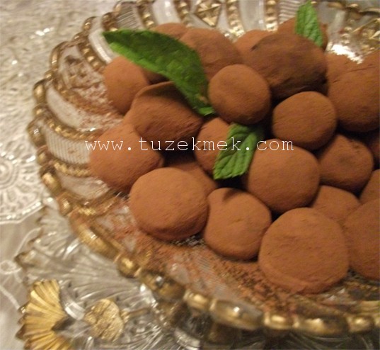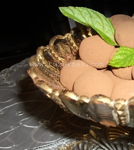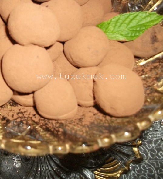 Çikolatalı harçtan küçük parçalar alarak avucumda yuvarlayıp, kakaoya buladım.