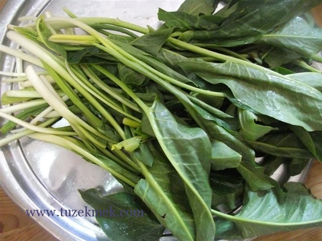 Kenar yaprakları temizlenen tirşikler güzelce yıkanıp, suyu süzdürülür.