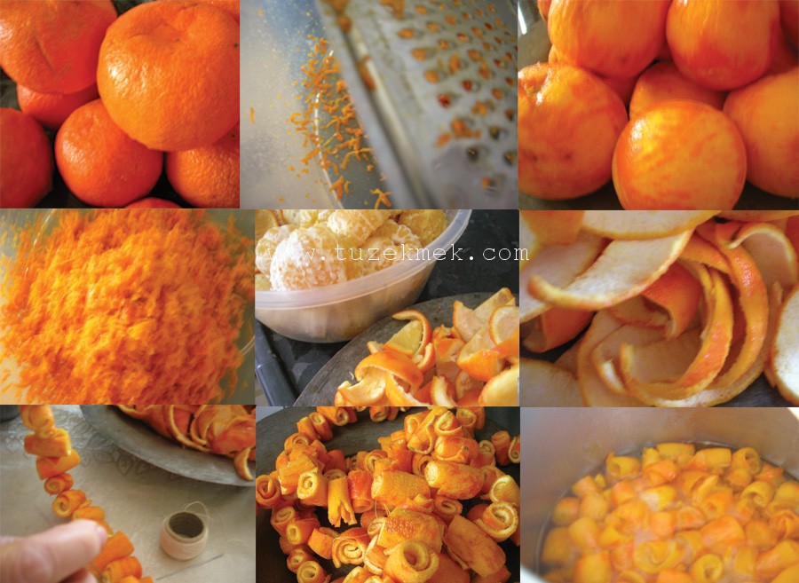 Rendenin ince bölümüyle turunçların kabuğunun dış yüzeyi incecik rendelenir.