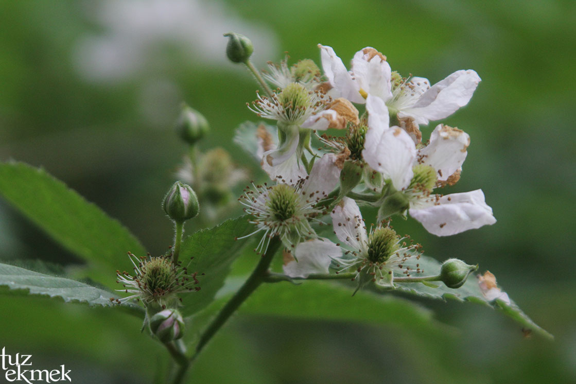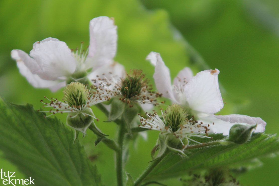 Hem çiçek açıp hem meyveye durmuş böğürtlenler.