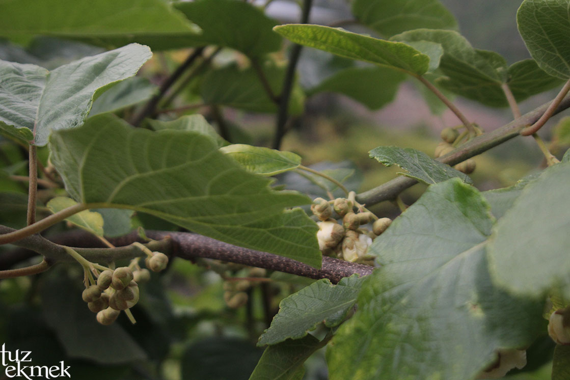 Bir kısmı meyveleri vermişken bir kısmı ise daha yeni çiçek açıyor.Kivi.