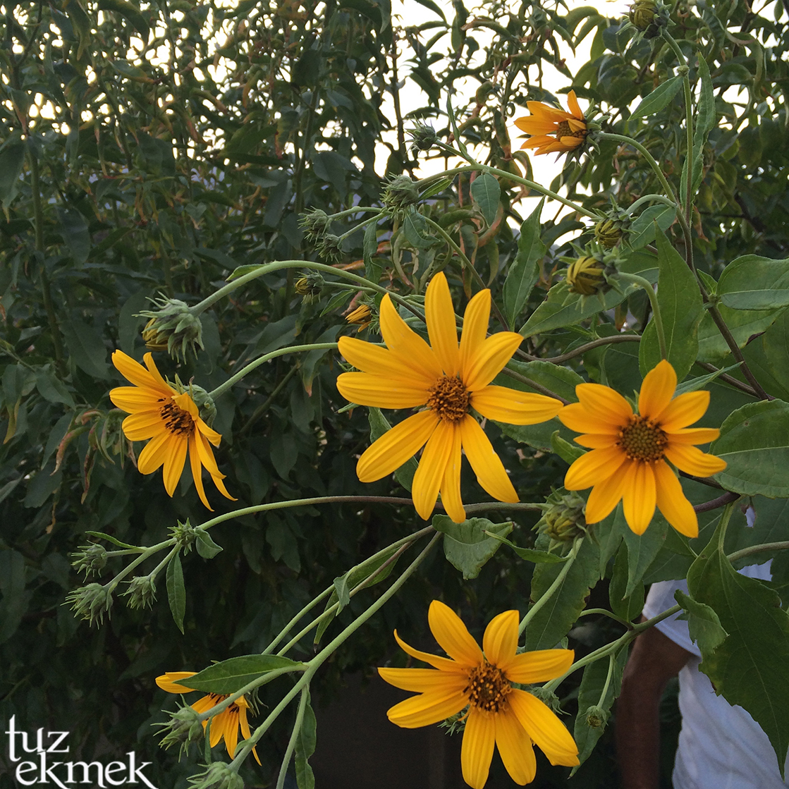 Kış boyu yeraltı güçleri bizim mutfağın vazgeçilmezlerindendir.  Daha yemek hiç kısmet olmayan yer elması yaz sonunda açan sarı çiçekleriyle bahçemizde mutlaka bulunur.