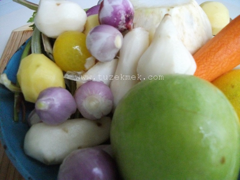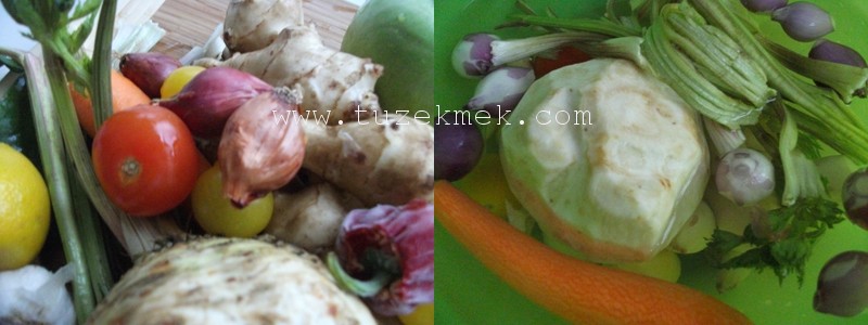 Tüm sebzeler usulünce temizlenir, yıkanır ve süzdürülür.