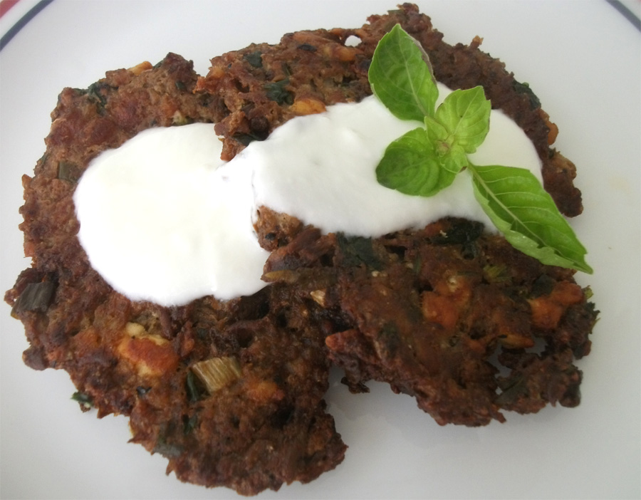 Üzerine biraz peynir, 2 yumurta, 2 yemek kaşığı taş değirmende öğüttürdüğüm kepekli un, İncecik kıyılmış maydanoz, reyhan, taze soğanve sarımsak ilave ettim.