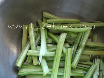 Ben temizlerken saplarını atmıyorum bir kısmını birkaç santim boyunda kesip, tencerenin dibine diziyorum; böylece yanmaktan ve dolmaları çok fazla su içinde kalmaktan kurtarmış oluyorum.